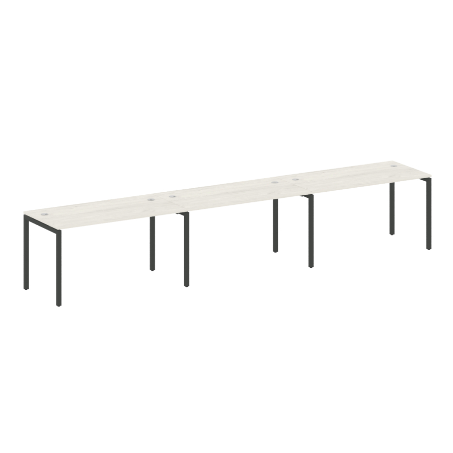 Столешницы имеют отверстия с пластиковыми заглушками кабель-канала серого цвета.