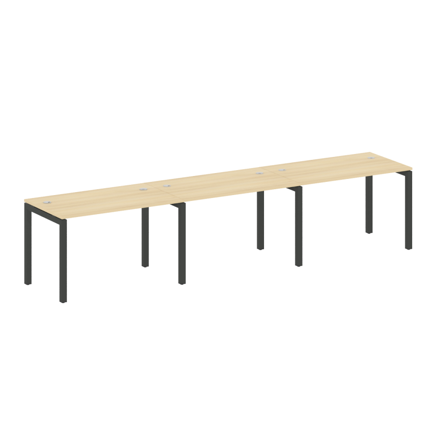 Столешницы имеют отверстия с пластиковыми заглушками кабель-канала серого цвета.