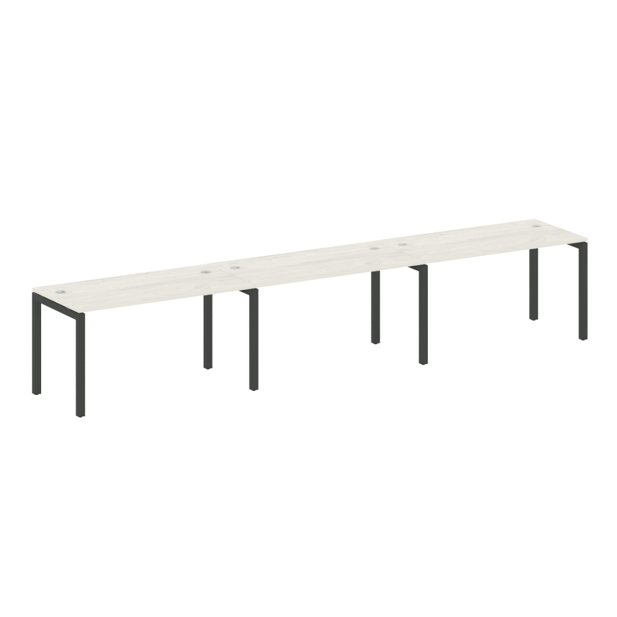 Столешницы имеют отверстия с пластиковыми заглушками кабель-канала серого цвета.