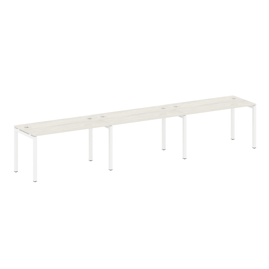 Столешницы имеют отверстия с пластиковыми заглушками кабель-канала серого цвета.