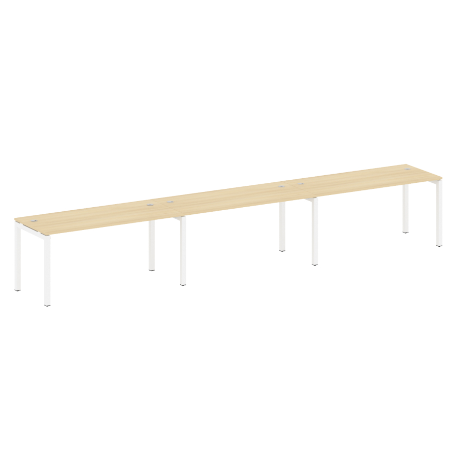 Столешницы имеют отверстия с пластиковыми заглушками кабель-канала серого цвета.