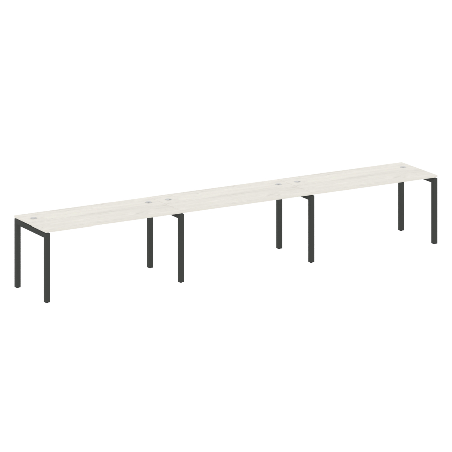 Столешницы имеют отверстия с пластиковыми заглушками кабель-канала серого цвета.