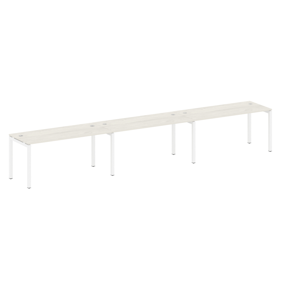 Столешницы имеют отверстия с пластиковыми заглушками кабель-канала серого цвета.