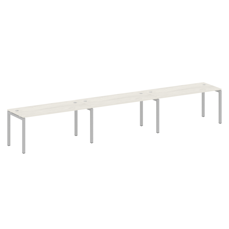 Столешницы имеют отверстия с пластиковыми заглушками кабель-канала серого цвета.