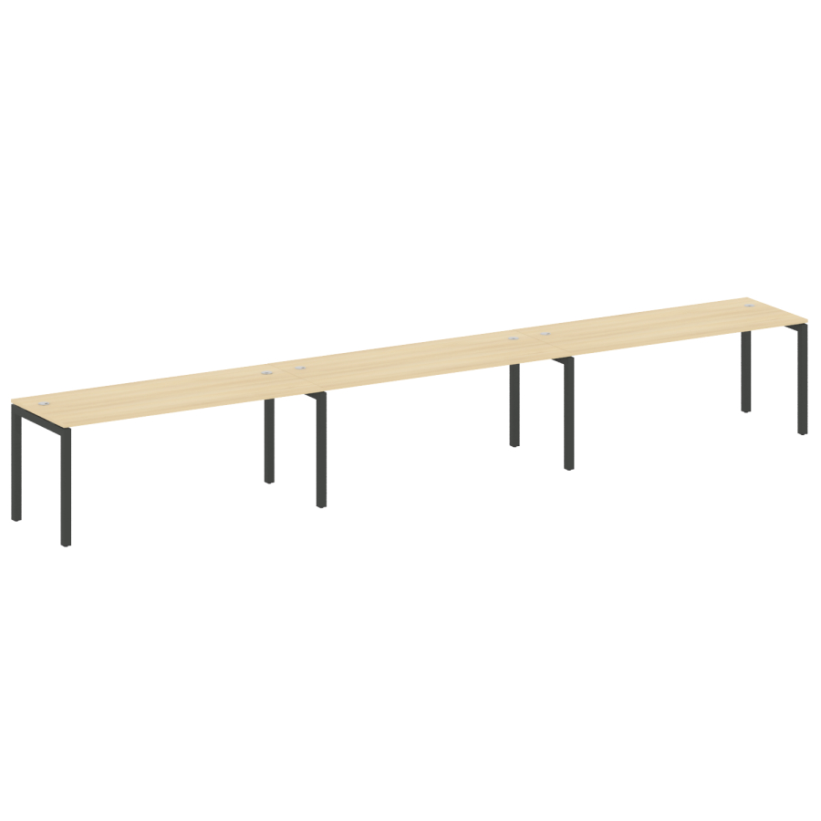 Столешницы имеют отверстия с пластиковыми заглушками кабель-канала серого цвета.