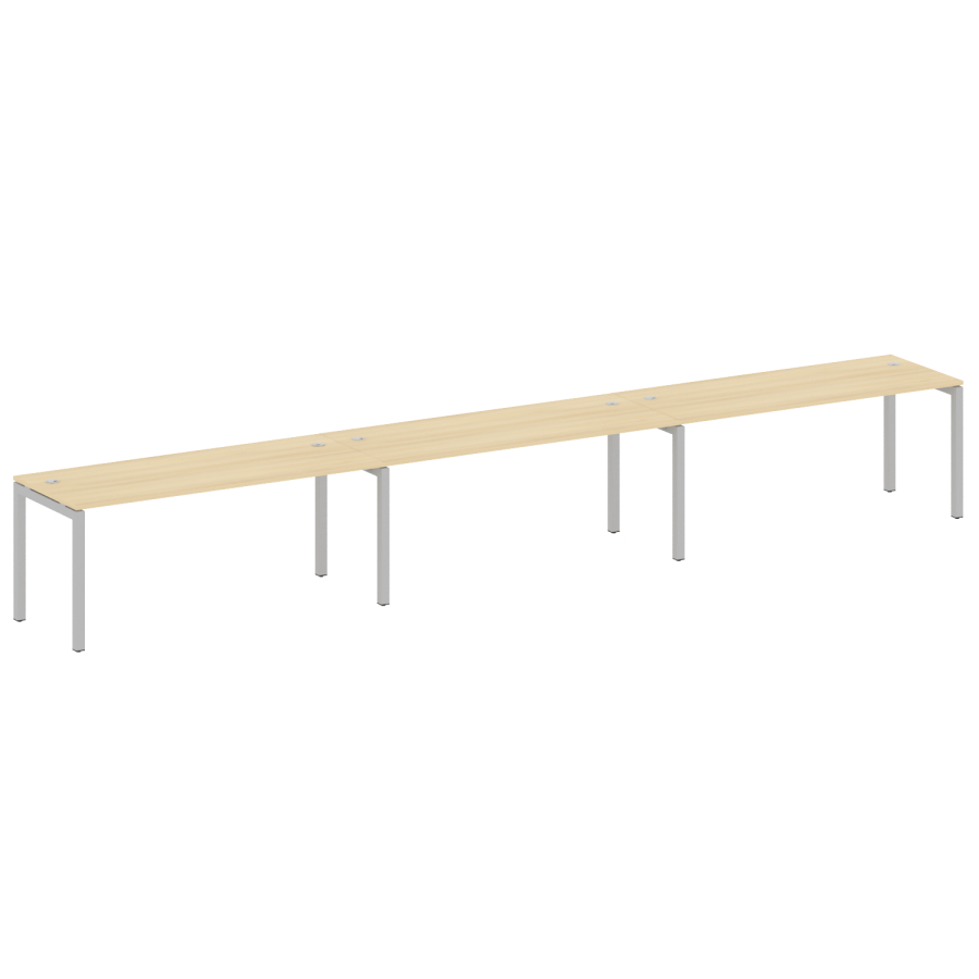 Столешницы имеют отверстия с пластиковыми заглушками кабель-канала серого цвета.