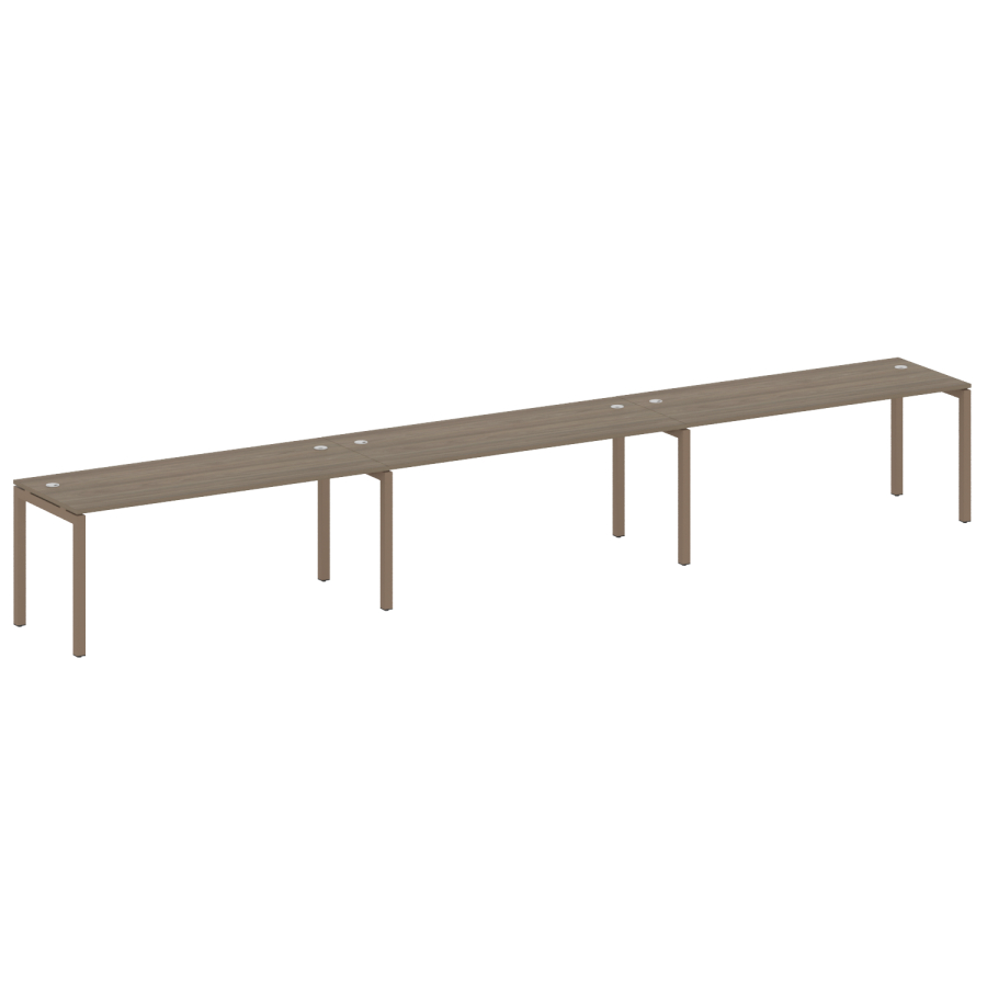 Столешницы имеют отверстия с пластиковыми заглушками кабель-канала серого цвета.