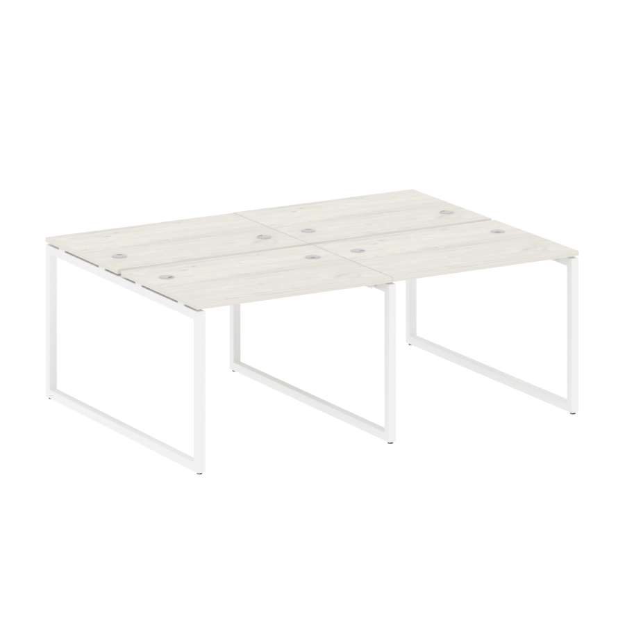 Столешницы имеют отверстия с пластиковыми заглушками кабель-канала серого цвета.