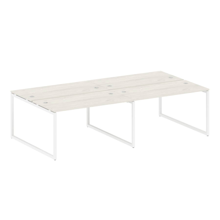 Столешницы имеют отверстия с пластиковыми заглушками кабель-канала серого цвета.