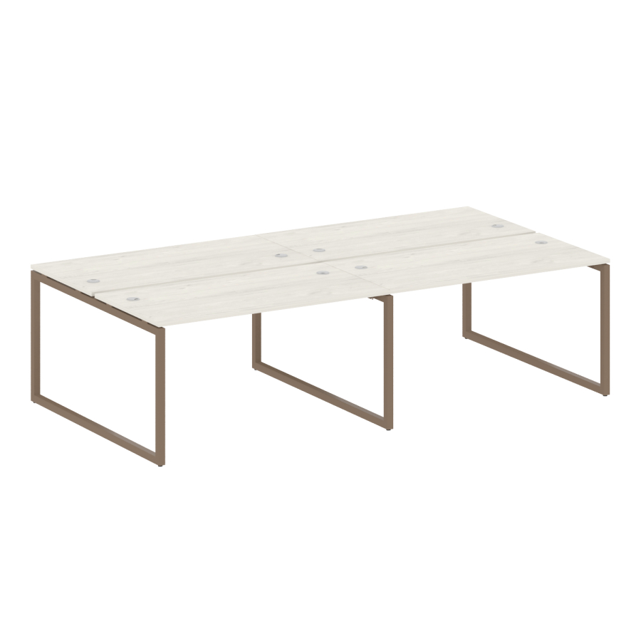 Столешницы имеют отверстия с пластиковыми заглушками кабель-канала серого цвета.