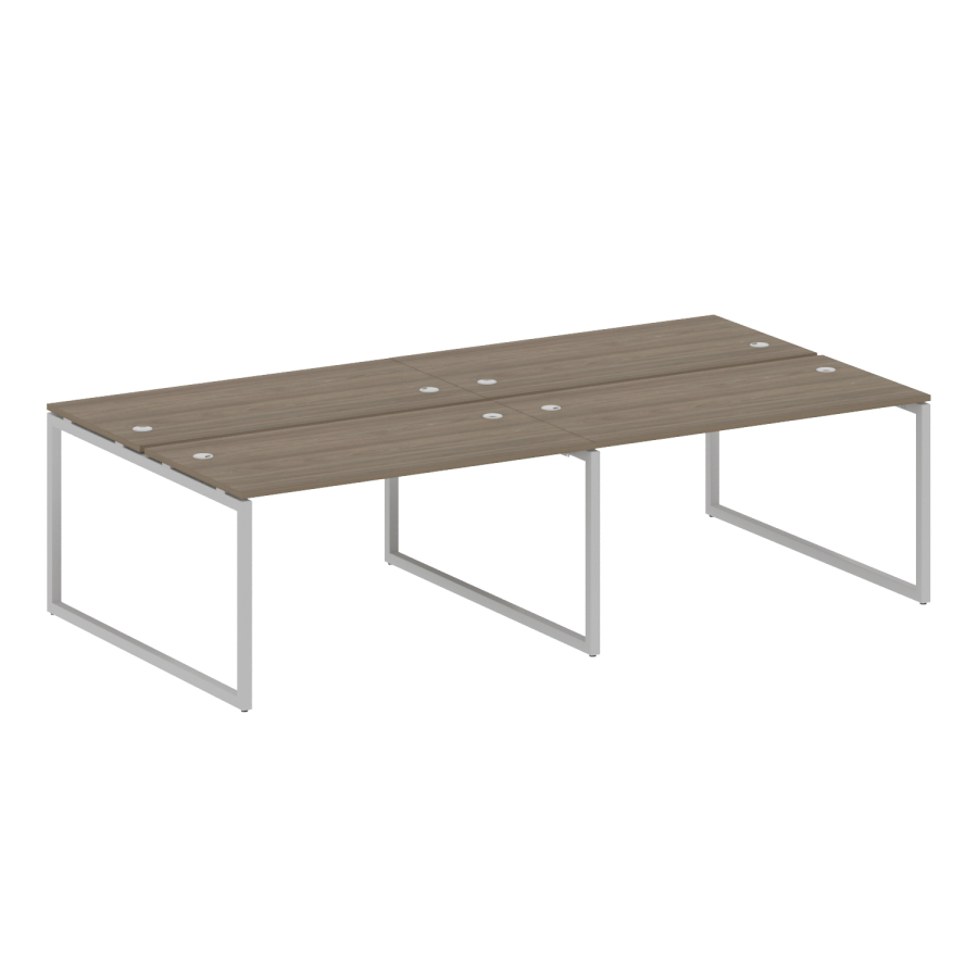 Столешницы имеют отверстия с пластиковыми заглушками кабель-канала серого цвета.