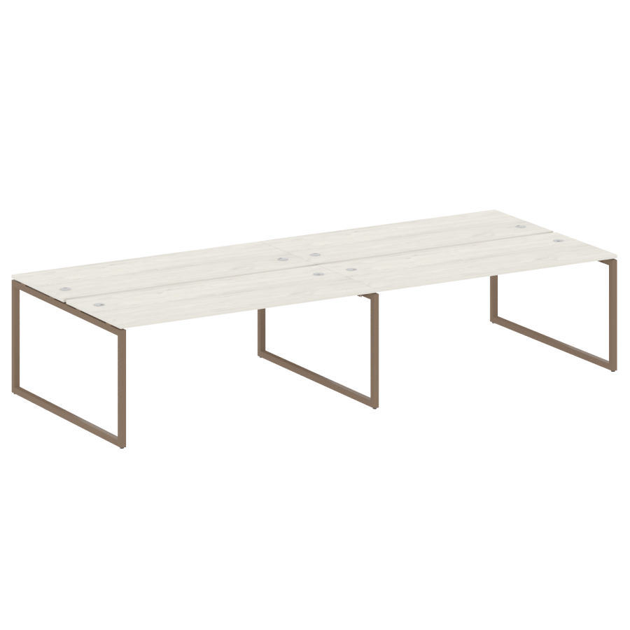 Столешницы имеют отверстия с пластиковыми заглушками кабель-канала серого цвета.