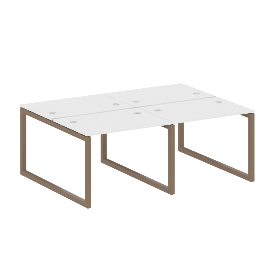 Столешницы имеют отверстия с пластиковыми заглушками кабель-канала серого цвета.