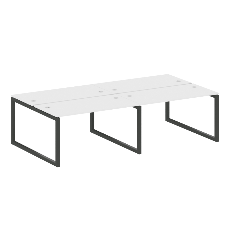 Столешницы имеют отверстия с пластиковыми заглушками кабель-канала серого цвета.