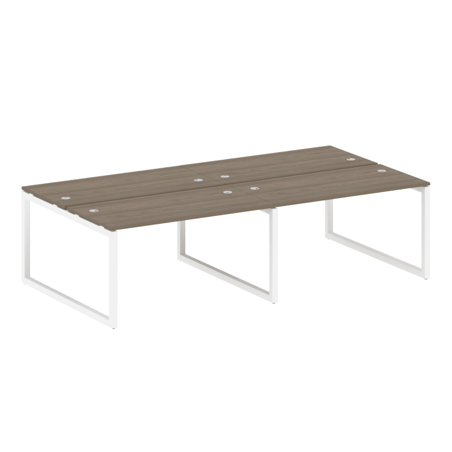 Столешницы имеют отверстия с пластиковыми заглушками кабель-канала серого цвета.