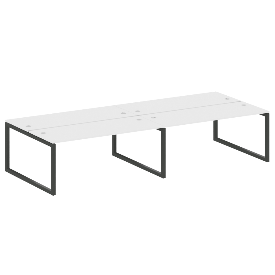 Столешницы имеют отверстия с пластиковыми заглушками кабель-канала серого цвета.
