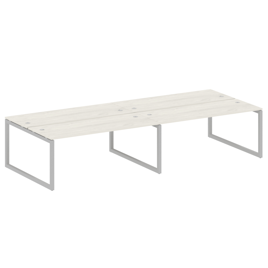 Столешницы имеют отверстия с пластиковыми заглушками кабель-канала серого цвета.