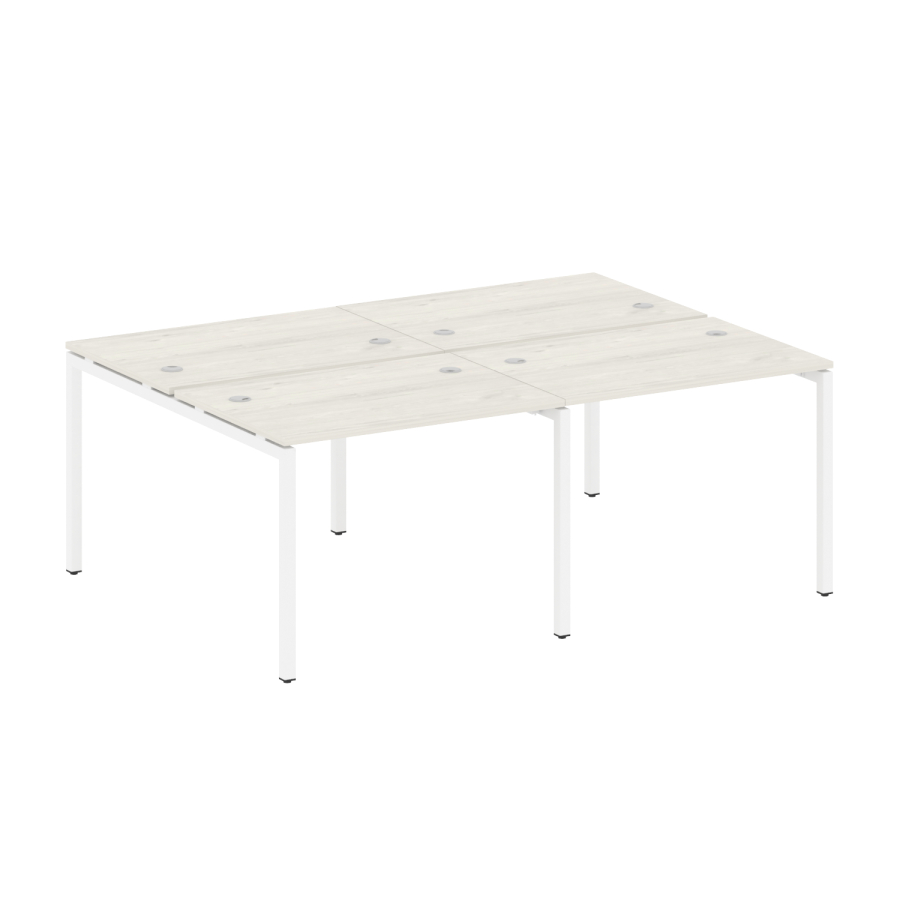 Столешницы имеют отверстия с пластиковыми заглушками кабель-канала серого цвета.