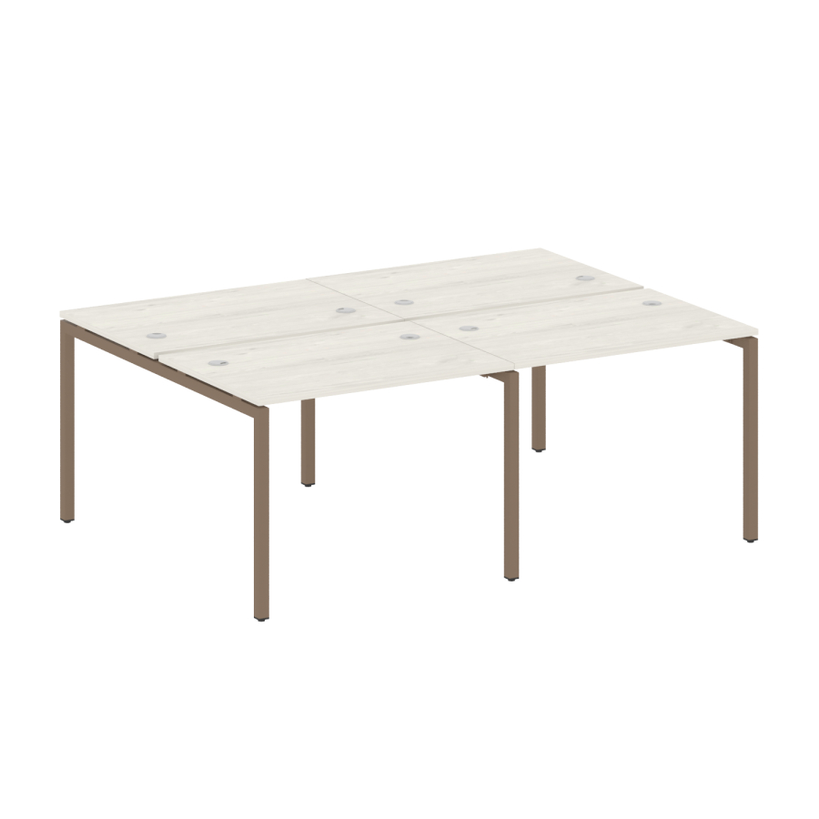 Столешницы имеют отверстия с пластиковыми заглушками кабель-канала серого цвета.