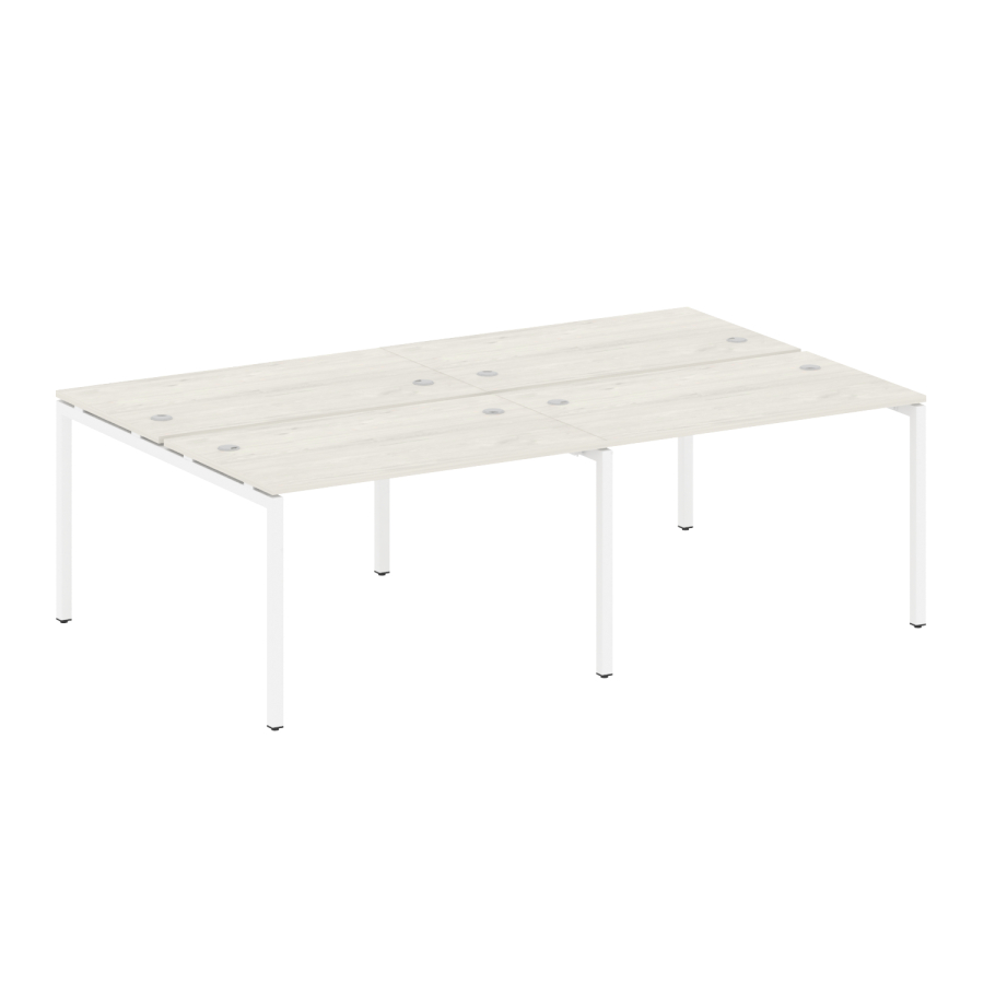 Столешницы имеют отверстия с пластиковыми заглушками кабель-канала серого цвета.