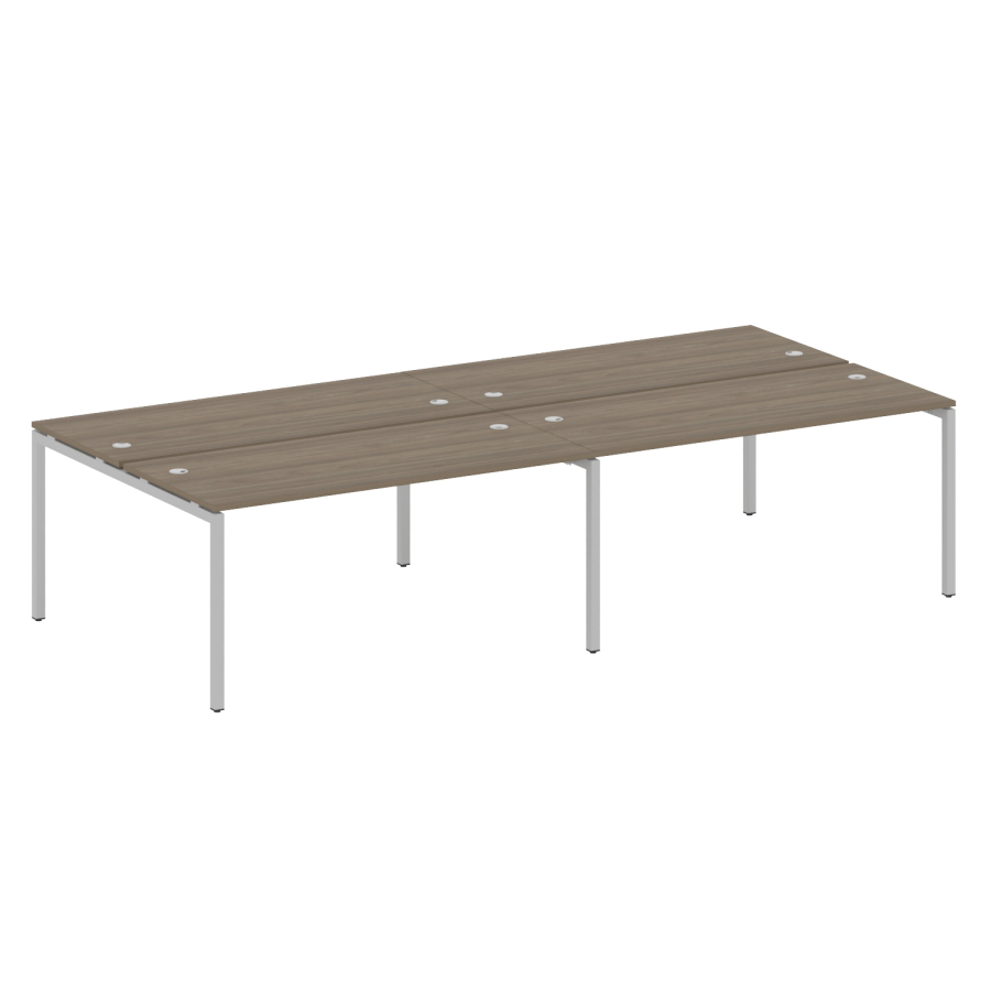 Столешницы имеют отверстия с пластиковыми заглушками кабель-канала серого цвета.