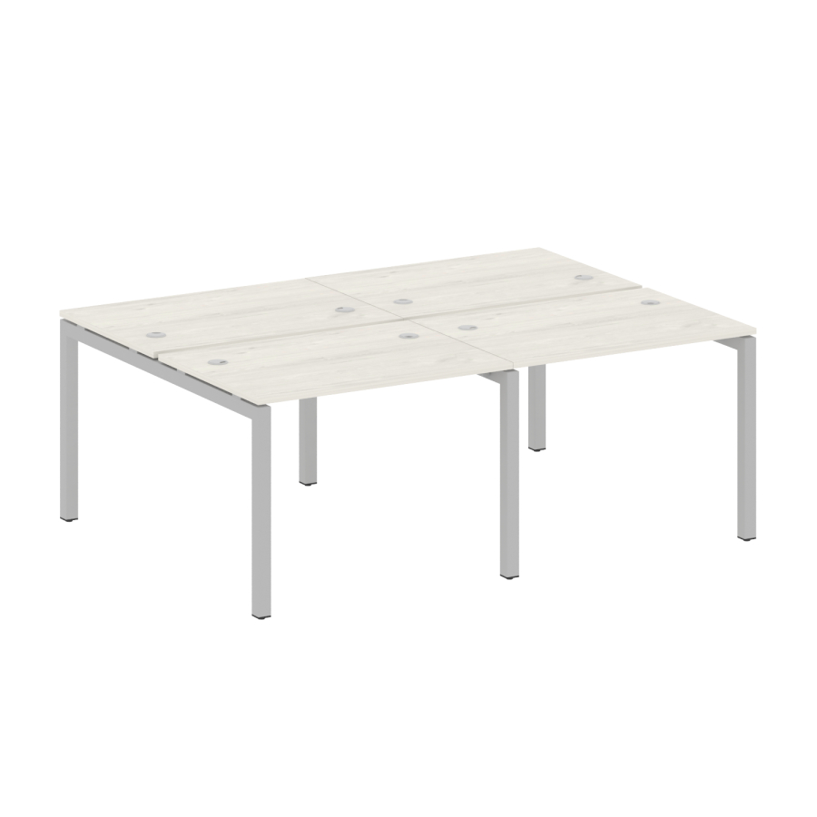 Столешницы имеют отверстия с пластиковыми заглушками кабель-канала серого цвета.