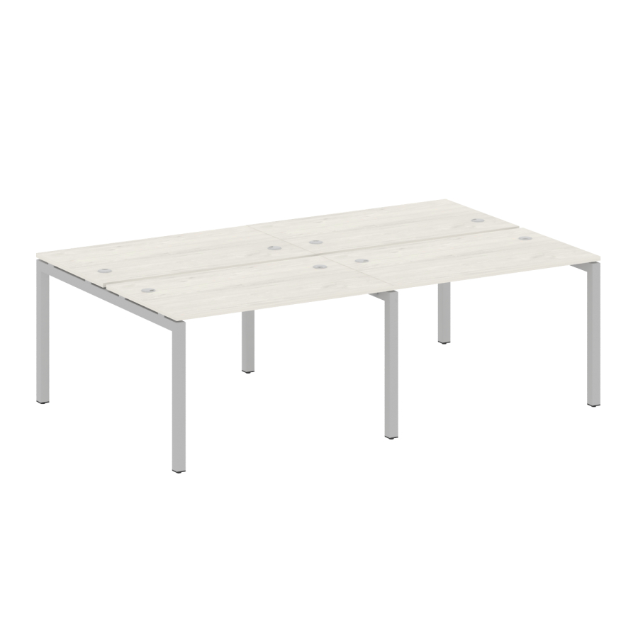 Столешницы имеют отверстия с пластиковыми заглушками кабель-канала серого цвета.
