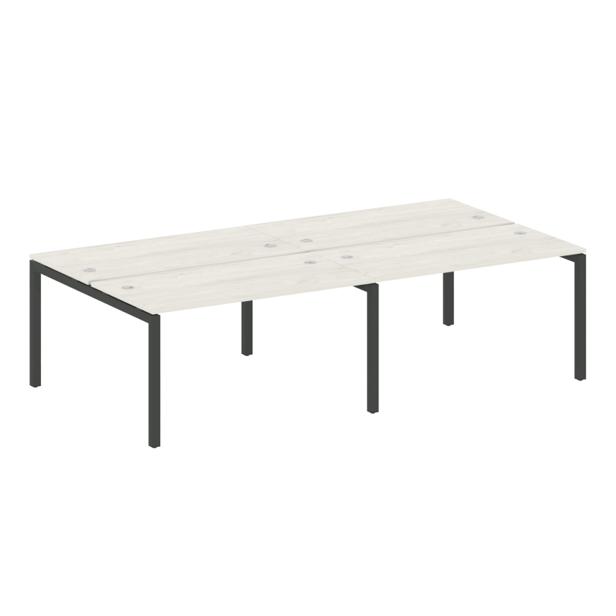 Столешницы имеют отверстия с пластиковыми заглушками кабель-канала серого цвета.