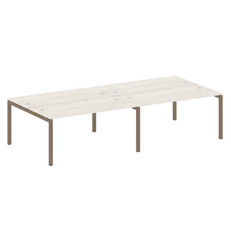 Столешницы имеют отверстия с пластиковыми заглушками кабель-канала серого цвета.