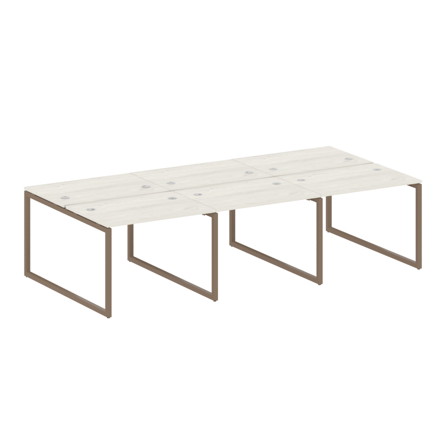Столешницы имеют отверстия с пластиковыми заглушками кабель-канала серого цвета.