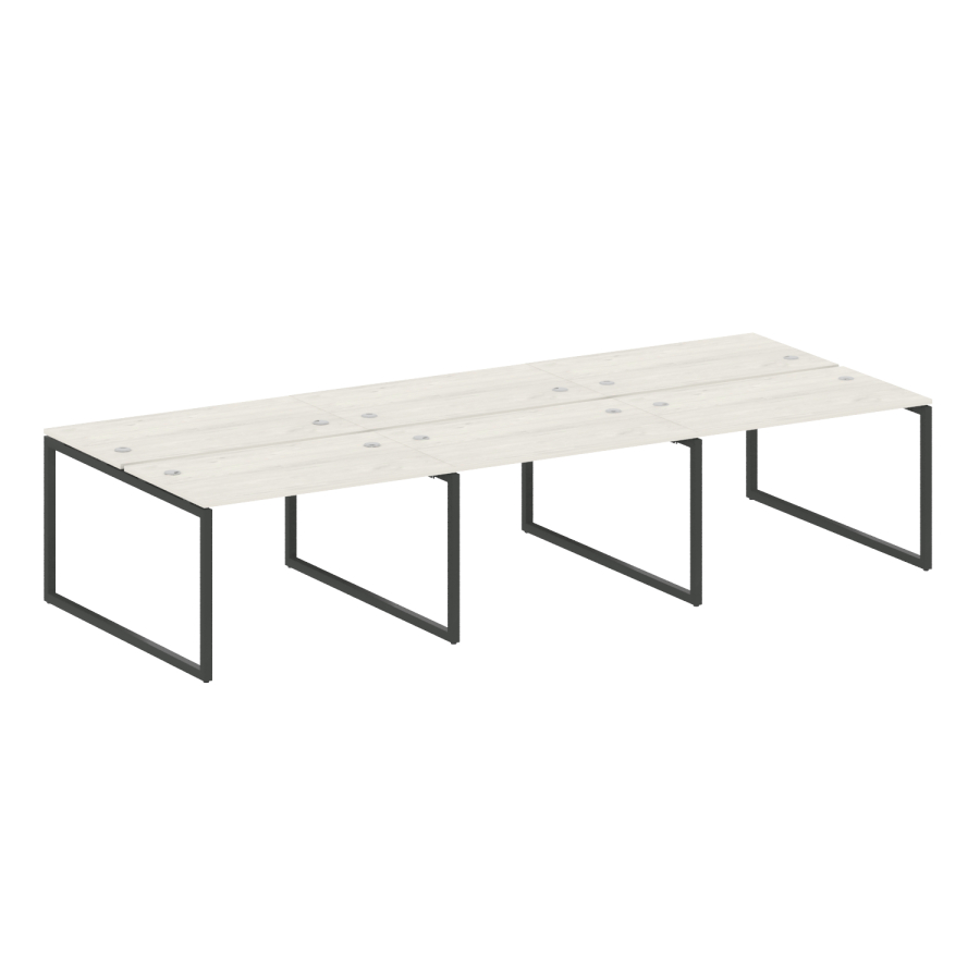 Столешницы имеют отверстия с пластиковыми заглушками кабель-канала серого цвета.