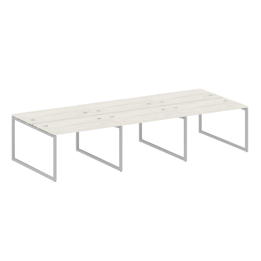 Столешницы имеют отверстия с пластиковыми заглушками кабель-канала серого цвета.