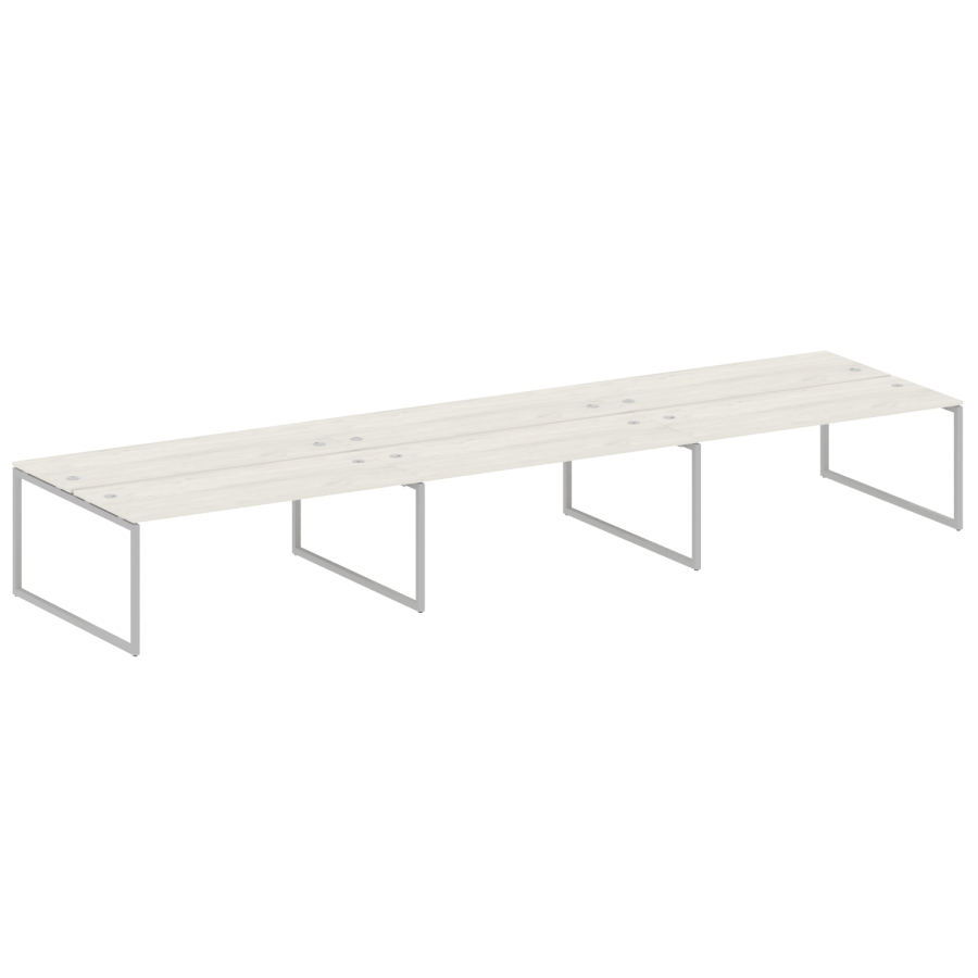 Столешницы имеют отверстия с пластиковыми заглушками кабель-канала серого цвета.