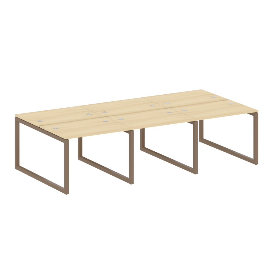 Столешницы имеют отверстия с пластиковыми заглушками кабель-канала серого цвета.