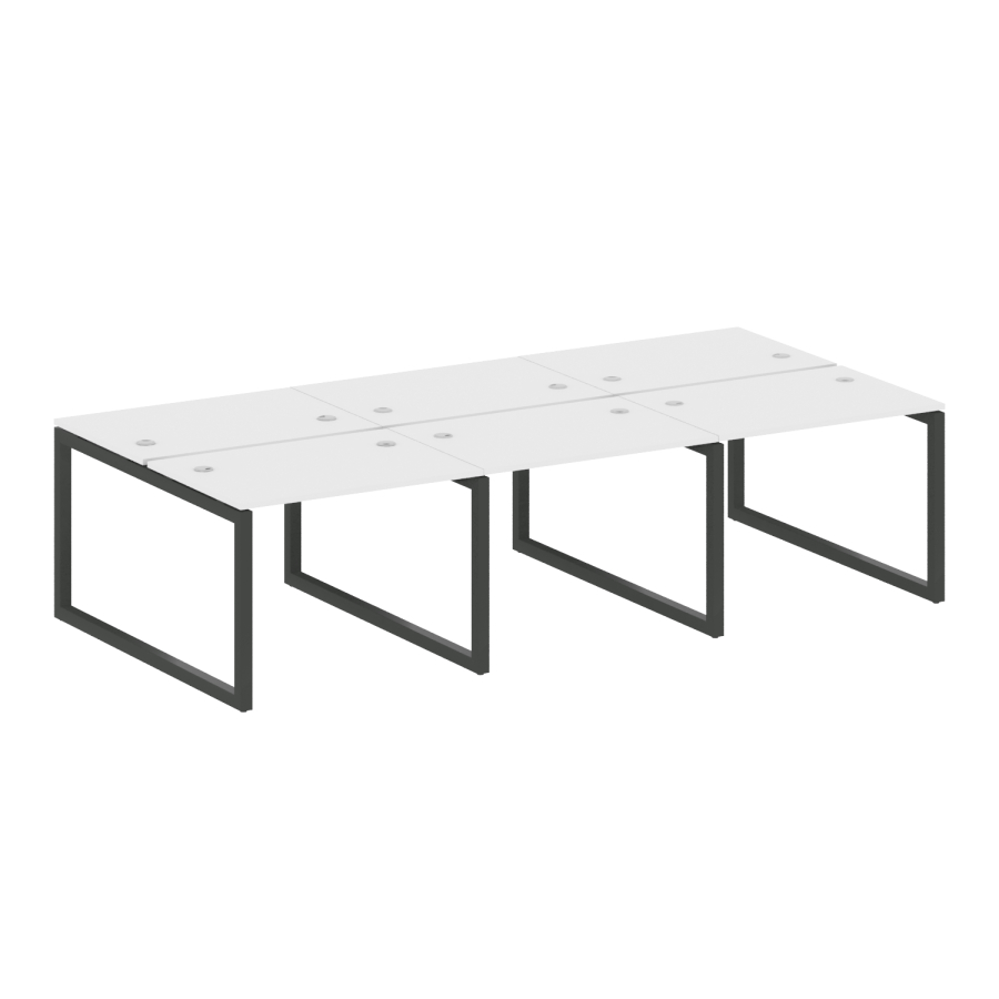 Столешницы имеют отверстия с пластиковыми заглушками кабель-канала серого цвета.