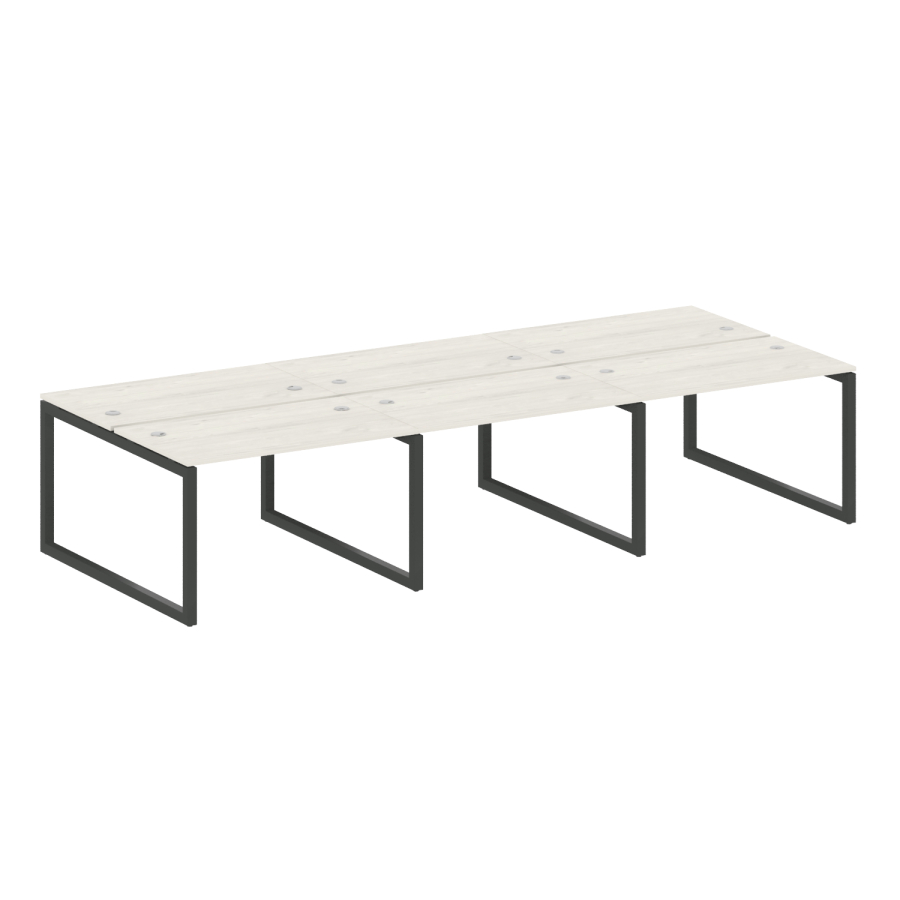 Столешницы имеют отверстия с пластиковыми заглушками кабель-канала серого цвета.
