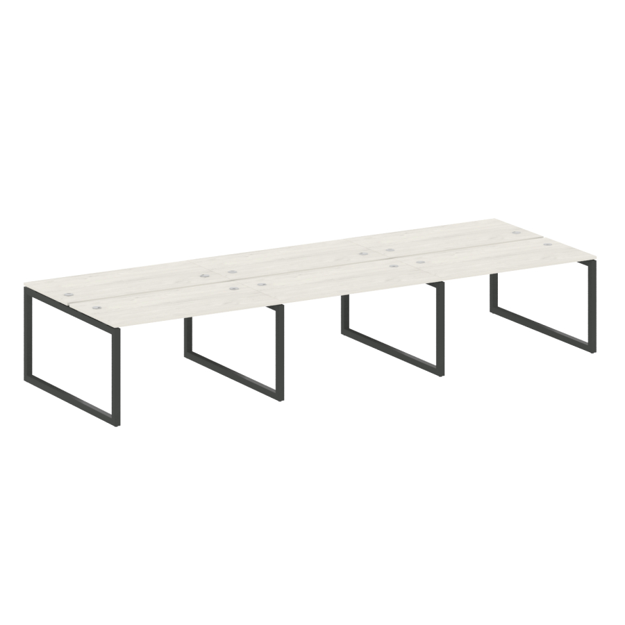 Столешницы имеют отверстия с пластиковыми заглушками кабель-канала серого цвета.