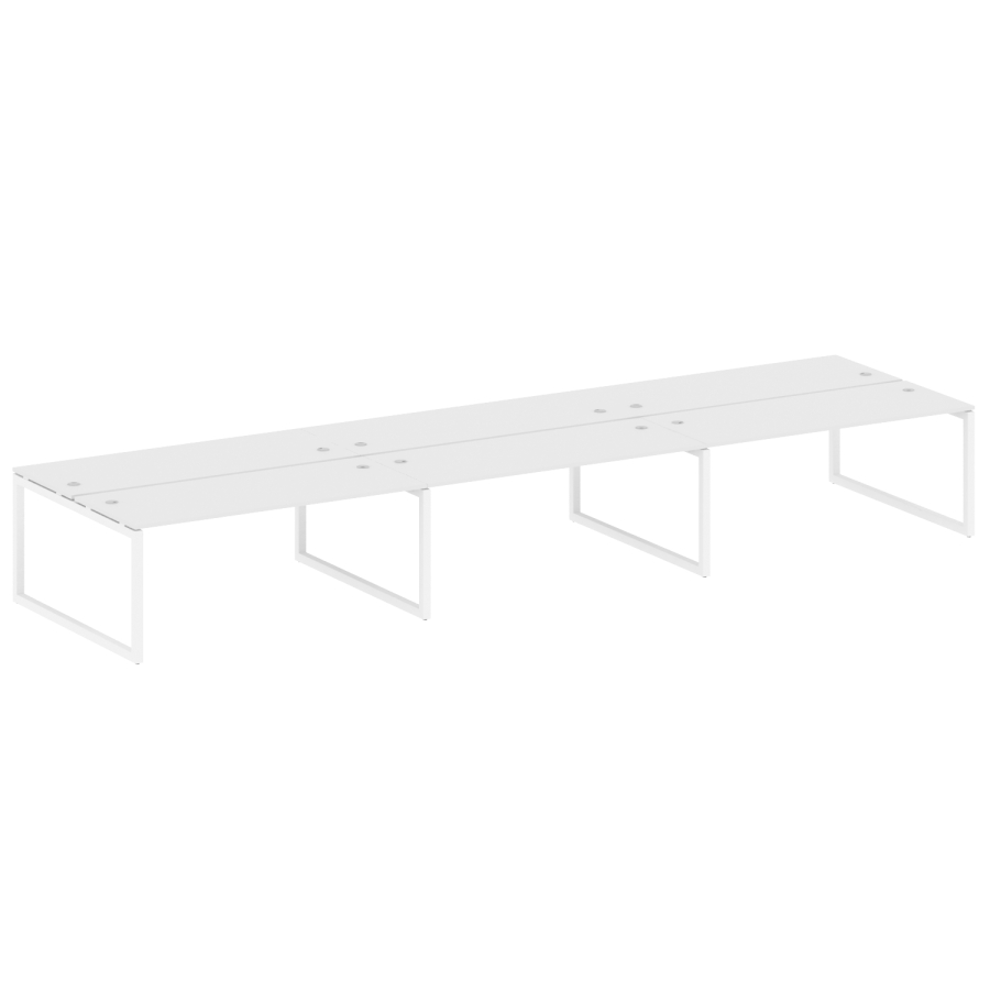 Столешницы имеют отверстия с пластиковыми заглушками кабель-канала серого цвета.
