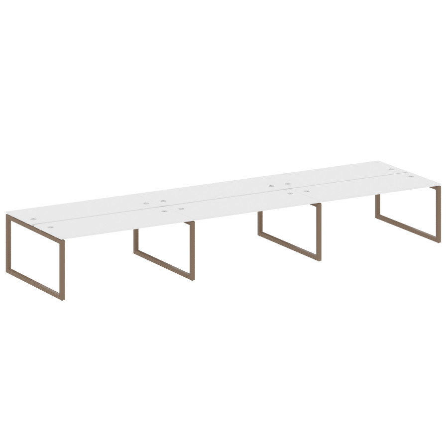 Столешницы имеют отверстия с пластиковыми заглушками кабель-канала серого цвета.