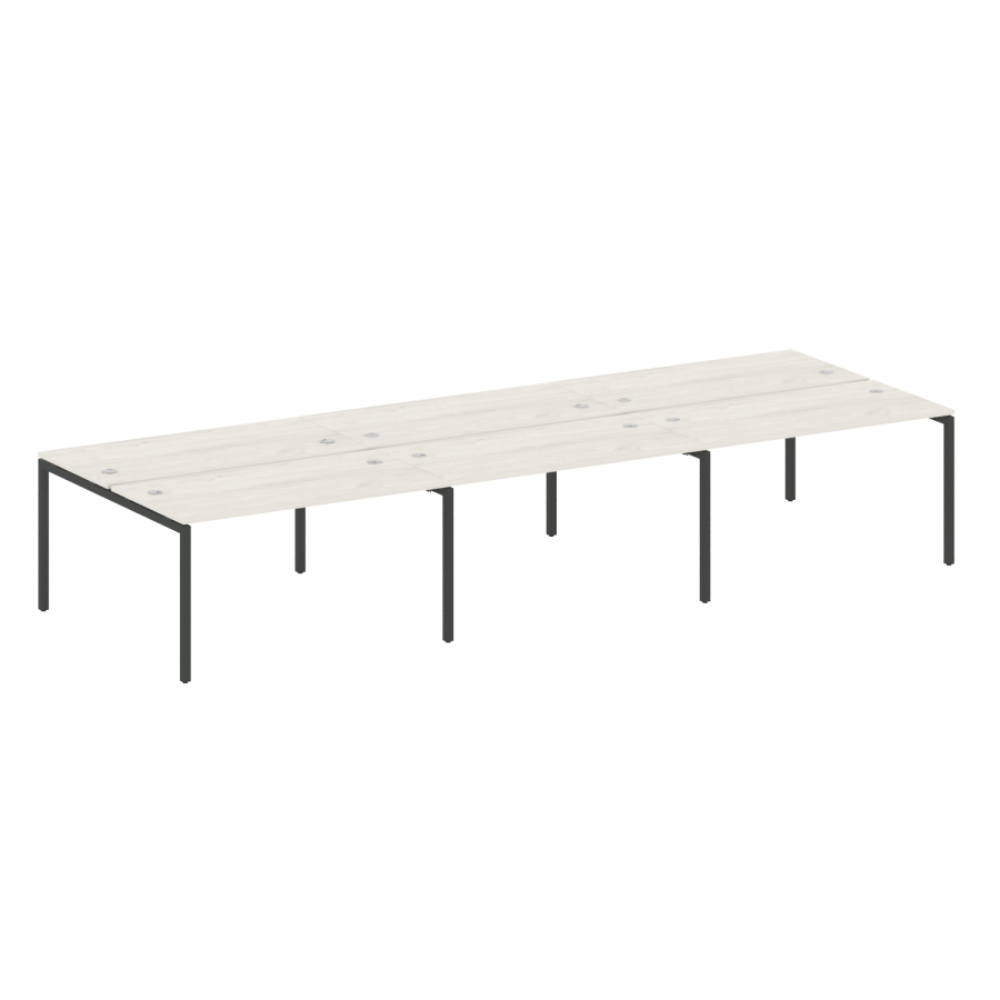 Столешницы имеют отверстия с пластиковыми заглушками кабель-канала серого цвета.