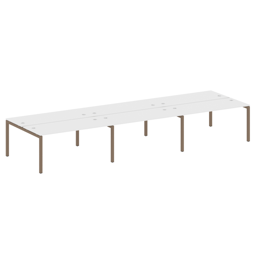 Столешницы имеют отверстия с пластиковыми заглушками кабель-канала серого цвета.