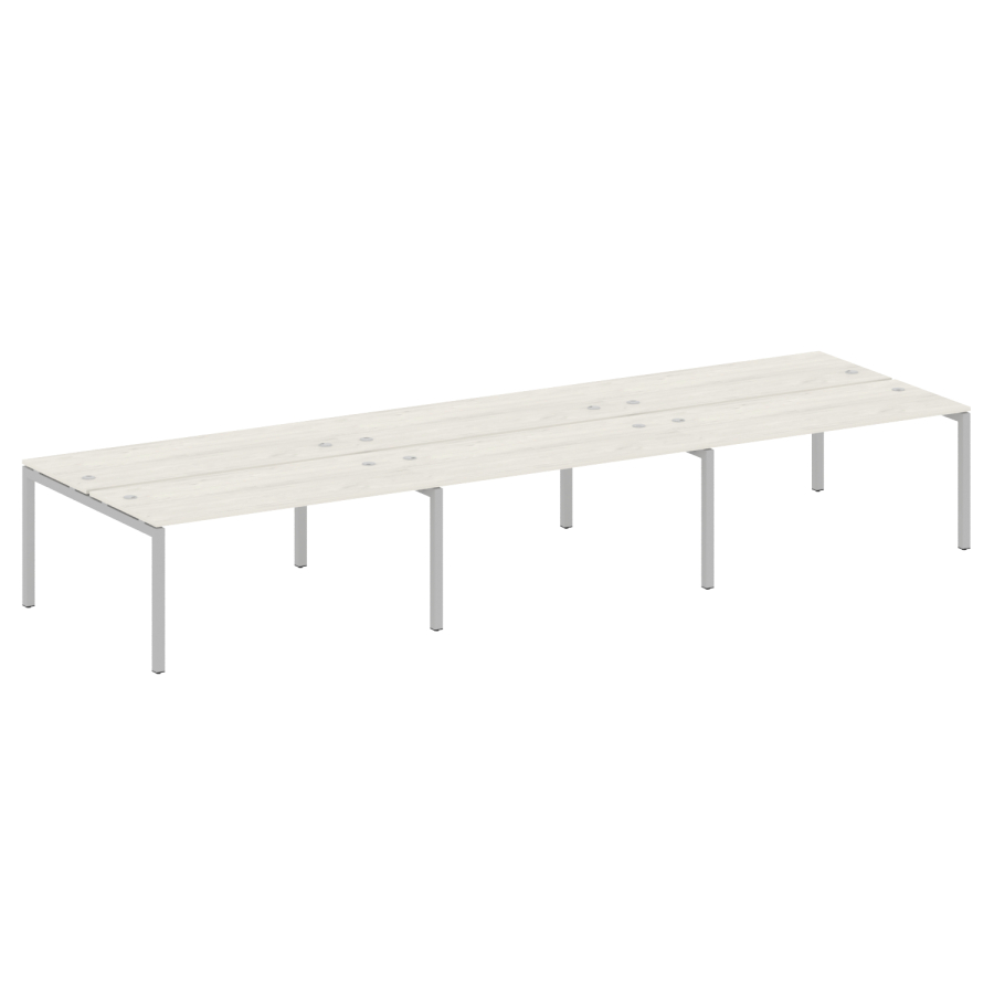Столешницы имеют отверстия с пластиковыми заглушками кабель-канала серого цвета.