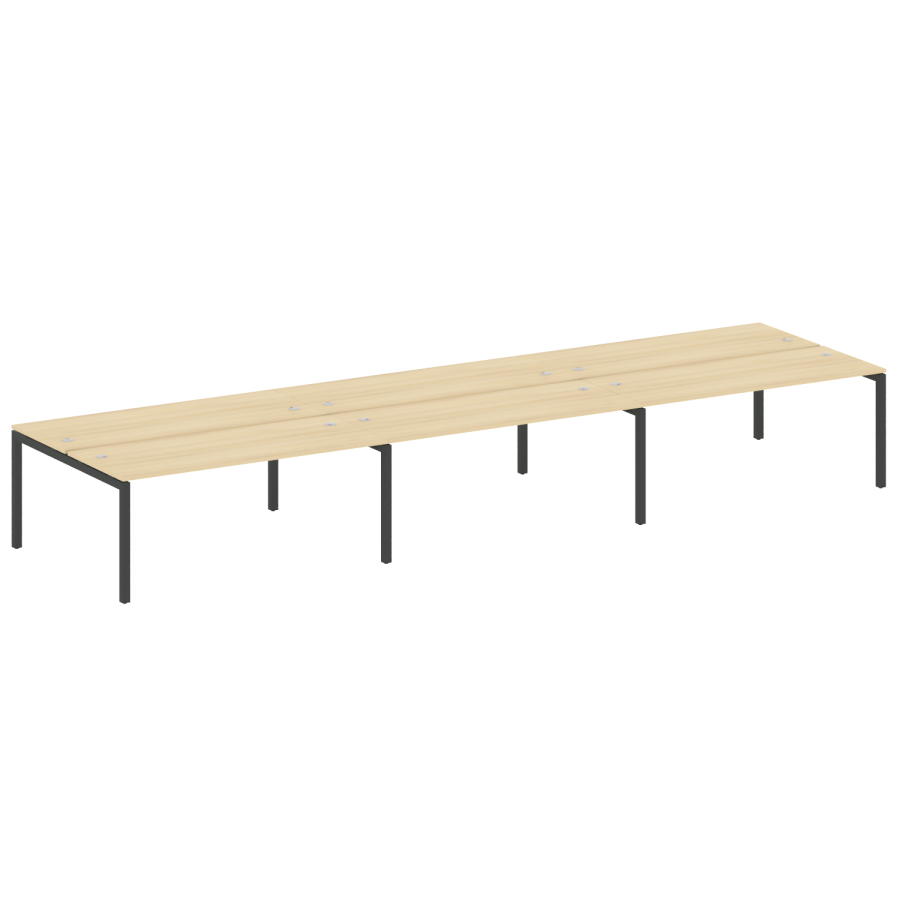 Столешницы имеют отверстия с пластиковыми заглушками кабель-канала серого цвета.