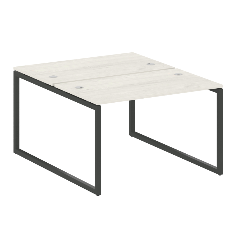 Столешницы имеют отверстия с пластиковыми заглушками кабель-канала серого цвета.