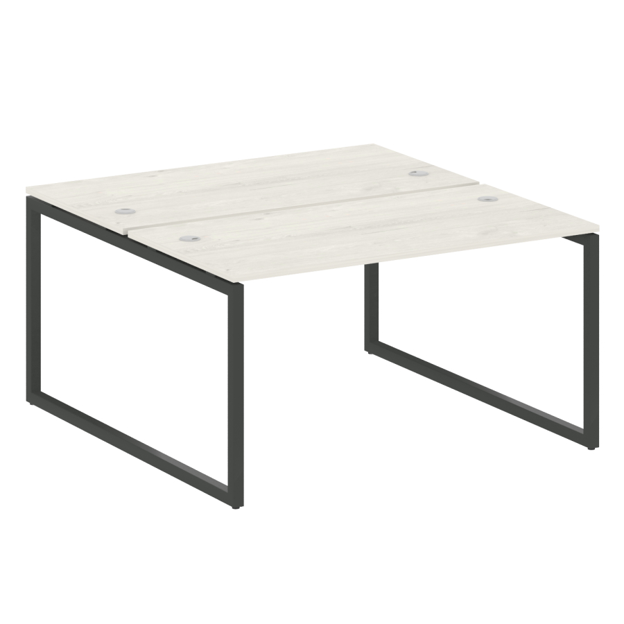 Столешницы имеют отверстия с пластиковыми заглушками кабель-канала серого цвета.