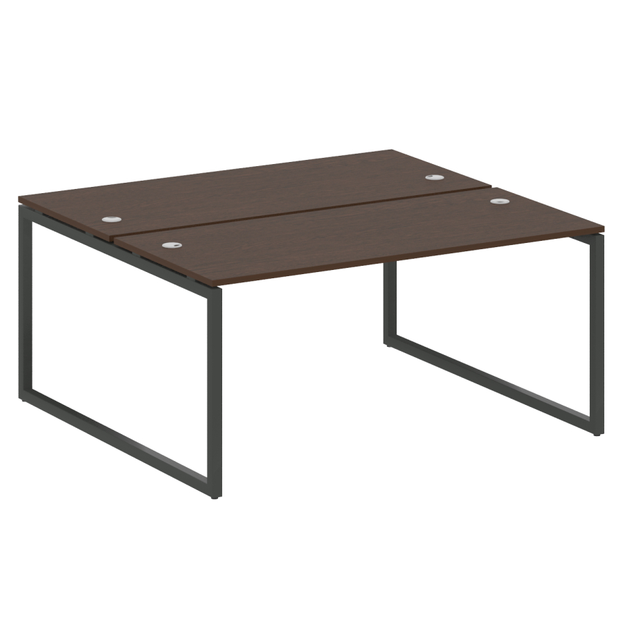Столешницы имеют отверстия с пластиковыми заглушками кабель-канала серого цвета.
