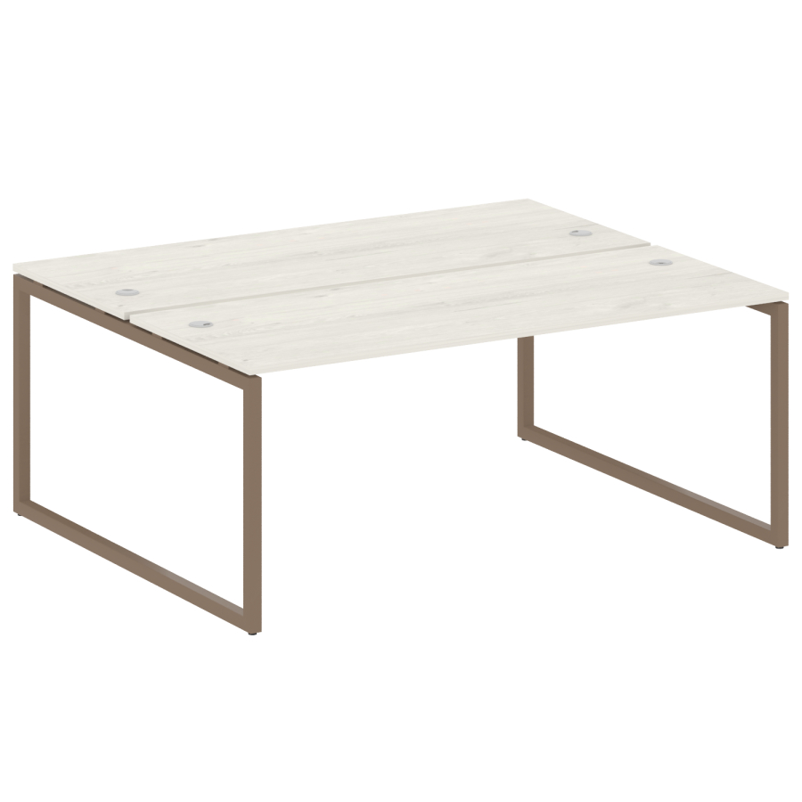Столешницы имеют отверстия с пластиковыми заглушками кабель-канала серого цвета.