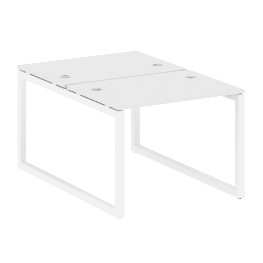 Столешницы имеют отверстия с пластиковыми заглушками кабель-канала серого цвета.