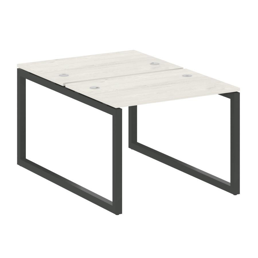 Столешницы имеют отверстия с пластиковыми заглушками кабель-канала серого цвета.