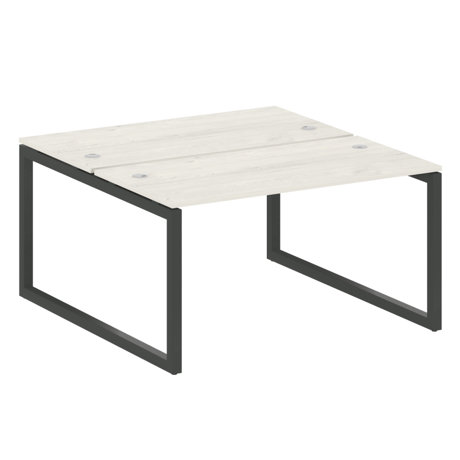 Столешницы имеют отверстия с пластиковыми заглушками кабель-канала серого цвета.